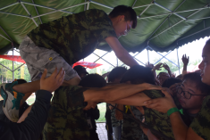 在之后的兩天訓(xùn)練中, 4個小隊的成員們分別挑戰(zhàn)了“團(tuán)隊建設(shè)、熱身破冰,立軍令狀”“天地英雄”、“同心木、團(tuán)隊浮橋”、“野炊”“光之韻”、“徒步行動”、 “突破封鎖、命懸一線”、“畢業(yè)線”項目 。一個個精心設(shè)計的拓展項目激發(fā)了大家濃厚的興趣與熱情,在交叉進(jìn)行的拓展體驗(yàn)過程中,團(tuán)隊成員們在共同的配合下,攻克了一個個曾經(jīng)認(rèn)為不可能完成的任務(wù)。每個項目結(jié)束后大家都共同分享了成功的喜悅和挑戰(zhàn)的激情,充分的體會到了團(tuán)隊信任、有效溝通、換位思考、合理組織、領(lǐng)導(dǎo)力、執(zhí)行力和團(tuán)隊協(xié)作等與工作息息相關(guān)的管理意識和藝術(shù)?;顒舆^程中大家積極參與,迎難而上,大膽挑戰(zhàn)自我,隊員之間相互加油,相互鼓勵,克服心理障礙,不逃避不放棄。每一項訓(xùn)練,都是一次感動,每一次感動,都是來自心靈的震撼。