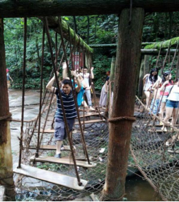 匆匆結(jié)束午餐后,大家都懷著興奮的心情到達(dá)景區(qū)游客中心,排隊(duì)乘坐景區(qū)專用車輛進(jìn)入“十八里香草溝”,溝內(nèi)設(shè)含子母木船、龍拱車翻水、溯溪尋源、滑水、劃竹排、水上秋千、水上爬梯、翻水車、水上碰碰車、水上速滑等水上娛樂(lè)項(xiàng)目,大家在欣賞美景的同時(shí)又玩得不亦樂(lè)乎,一路走著,說(shuō)著。穿著景區(qū)售賣的草鞋,生怕摔跤。臉上卻掛著會(huì)心的笑容。