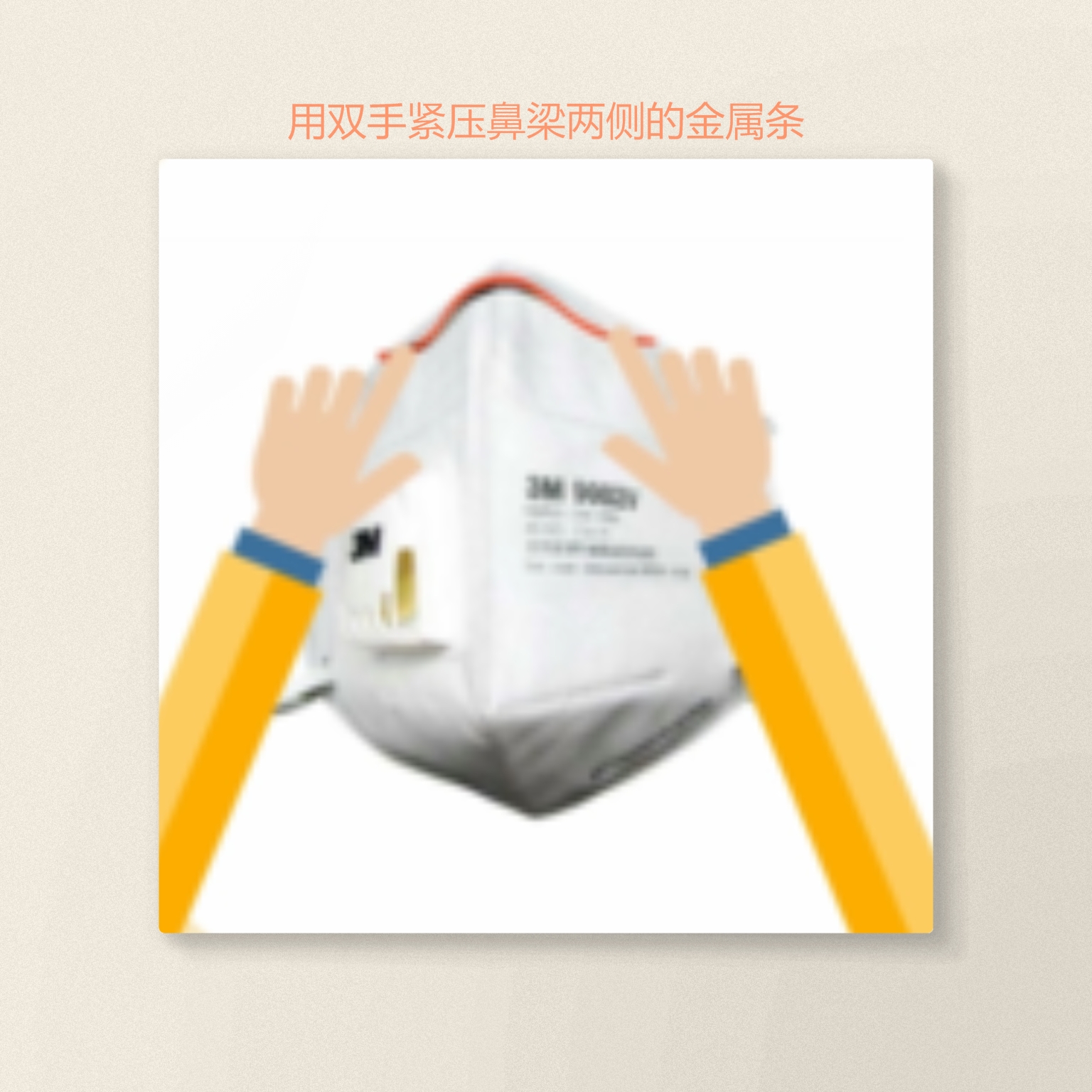 佩戴方式:將口罩橫貼在臉部口鼻上,用雙手將兩端的繩子掛在耳朵上,雙手緊壓鼻梁兩側(cè)的金屬條,使口罩上端緊貼鼻梁,向下拉伸口罩,使口罩不留褶皺。